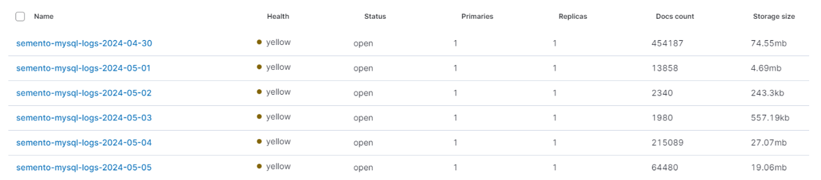 이렇게 curr_time을 트래킹하고, index명을 셋팅해주면, Kibana를 통해 다음과 같이 일별로 분리된 INDEX들을 확인할 수 있다.