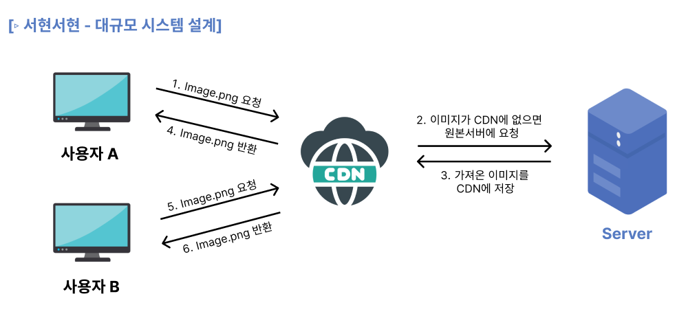 클라이언트와 서버 사이에 두고, 동영상이나 이미지를 조회할때 cdn을 먼저 조회한다. 없다면 원본저장소에서 가져오는 방식이다. cdn사업자들은 전국 곳곳에 서버를 관리하고 있기 때문에 가장 가까운 서버에서 응답이 오도록 보장된다. 유튜브가 하나의 동영상을 끊김없이 글로벌하게 제공할 수 있는 이유중에 하나이다.