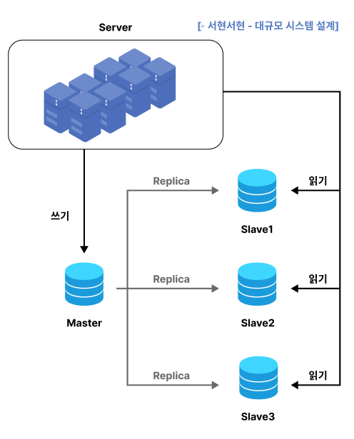 읽기연산은 나머지 Slave서버로 분산되어 요청되고, 새로운 SlaveDB가 장애서버를 대체한다.
